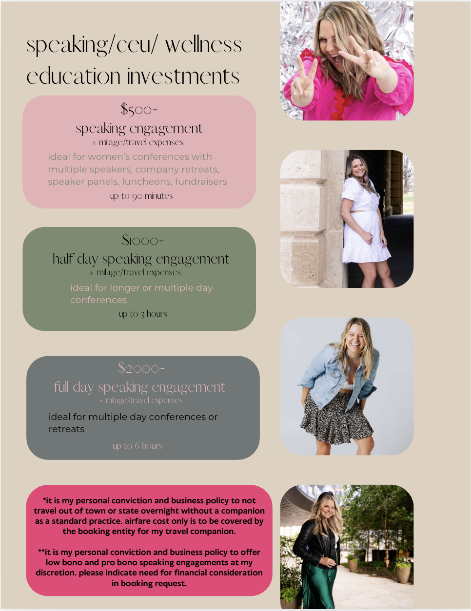 services, pricing, & booking information